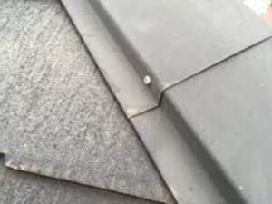 棟板金とは、スレート屋根や金属屋根のてっぺんに取り付けられている金属部分のこと。